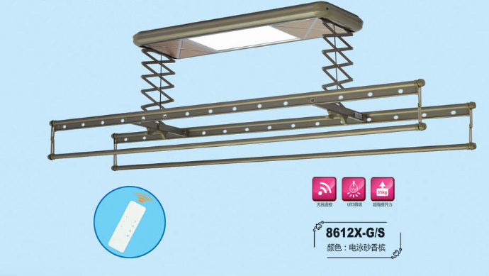 我们通常试用的升降晾衣架,就是智能电动晾衣机——集全效立体烘干技术、无线射频遥控、LED艺术照明、光波智能杀菌、专享音乐播放等功能为一体,高端智能化阳台家居产品。特别适合普通住宅、别墅、排屋、公寓、度假村等各种家庭住宅使用,是家装必备的家居产品之一。